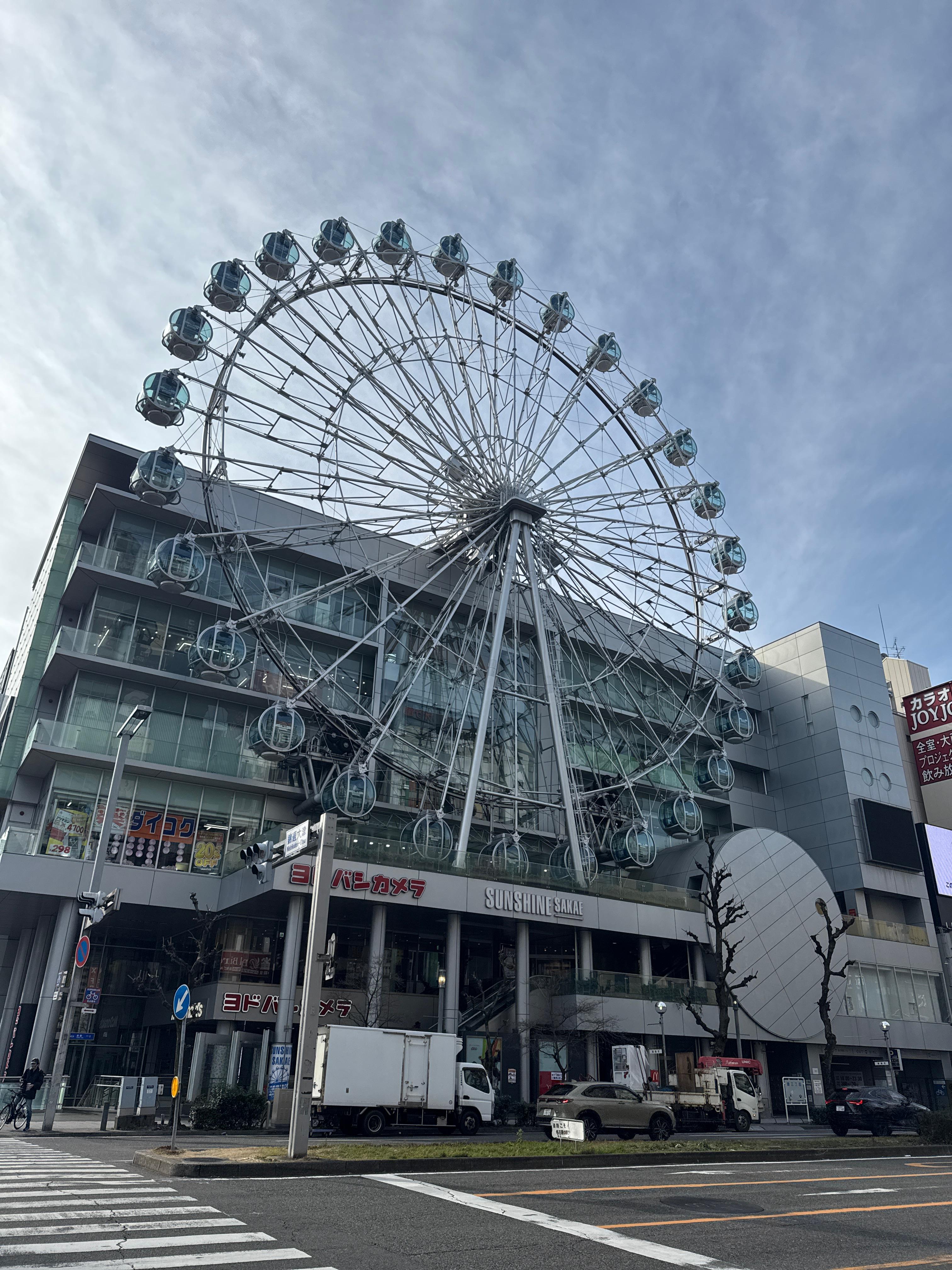 밥을 먹고 숙소로 돌아가던 도중에 찍은 선샤인 사카에와 스카이보트이다. 바로 맞은편에 돈키호테가 있기 때문에 한국어가 엄청 들리는 곳이기도 하다. 숙소에서 체크인 후 쉬다가, 미라이 타워를 조망할 수 있는 전망대가 있다고 해서 그쪽으로 움직였다.