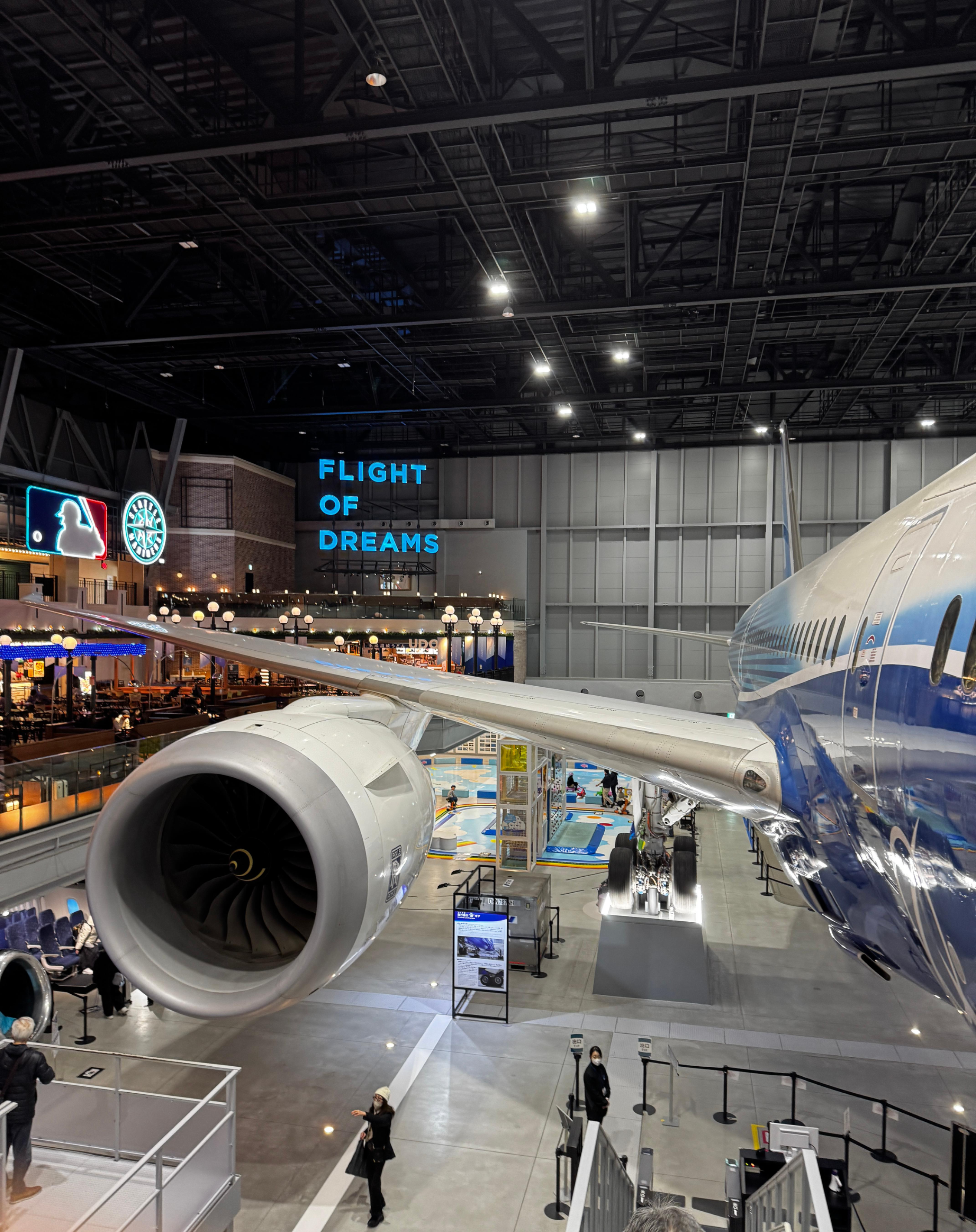 보잉 787 시제기(N787BA)이다. 칵핏도 3분이란 시간 동안 둘러볼 수 있게끔 되어있다. 2층과 3층에는 식당들도 있다.